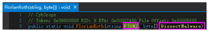 将进程名和PE数据传递给Cyb3rops类的FlorianRoth方法,然后在此方法内再传递给Kaspersky类的VKIntelVitaliKremez方法,多次传递后,最后将PE数据写入到“RegAsm.exe”执行: