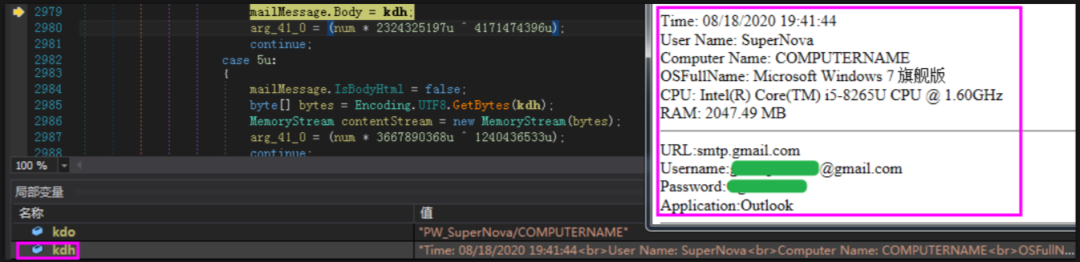 将获取到的计算机信息和用户登录凭证作为邮件的Body发送: