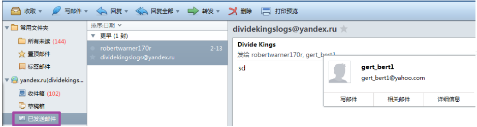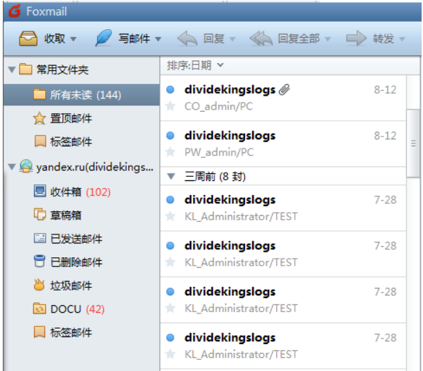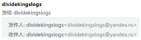 回传使用邮箱为“dividekingslogs@yandex.ru”,收件邮箱也是dividekingslogs@yandex.ru。