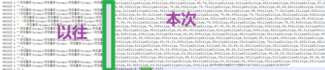 钓鱼邮件→附件为包含OLE嵌入式对象的RTF文件→混淆的VBA代码→PowerShell下载2个混淆的Payload(m9c.net/uploads/15(^[0-9]{8}$)1.jpg)和(m9c.net/uploads/15(^[0-9]{8}$)2.jpg)。Payload一个为恶意载荷,另一个为.Net编写的恶意载荷的注入器。VBA代码的混淆方式相似度极高,如大量添加同样的字符串然后替换: