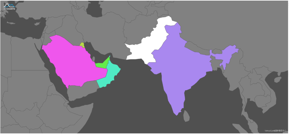以上能追踪到国家的受害者,大多集中在南亚和中东地区,有很强的地缘性特征(白色填充的国家为巴基斯坦,Gorgon被认为来自巴基斯坦):