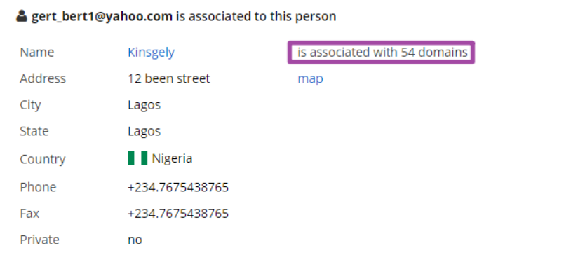 通过谷歌搜索,“gert_bert1@yahoo.com”邮箱使用者注册了大量的域名,多为仿冒域名,被模仿的域名大多为商业公司: