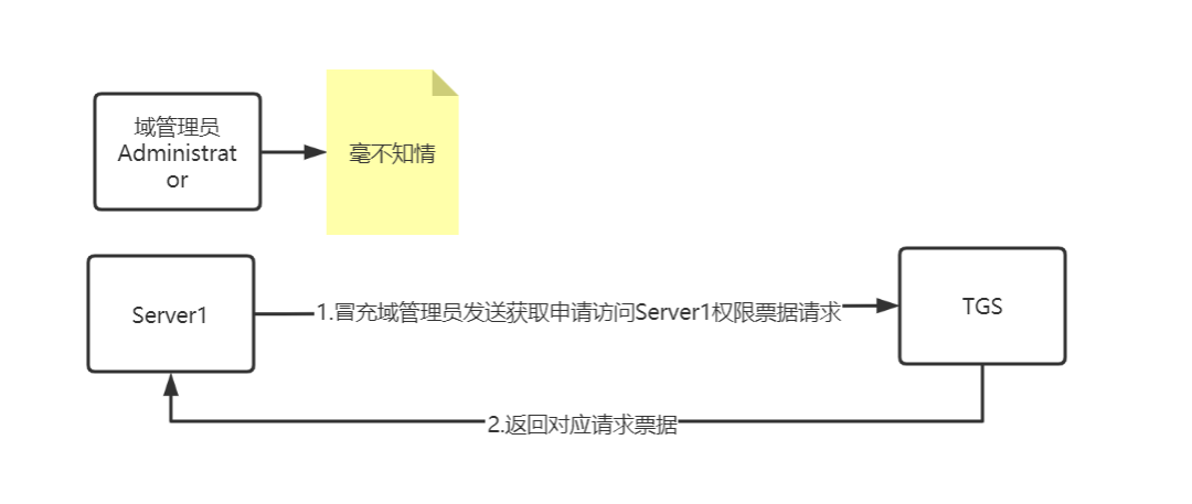 与黄金票据类似,白银票据也是在Kerberos流程中做伪造,而其伪造的是Client用TGT向TGS换的票。TGS是伪造的,所以没有和TGT通信,意味着DC从验证过。