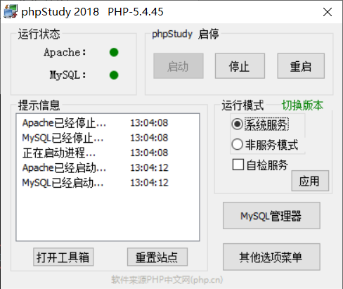 为了方便某些场景的使用,MySQL提供了LOAD DATA LOCAL INFILE语句,允许从客户端导入文件数据到服务器中。然而,由于此功能的实现逻辑存在一定缺陷,可能会造成服务端能在未经客户端允许的情况下读取客户端的文件内容。首先,我们来分析一下正常使用此功能时,客户端与服务端的流量交互过程。这里笔者采用的PHPStudy搭建的MySQL环境。首先,开启正常的MySQL服务。