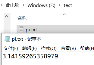 在“F:\test”新建一个pi.txt文件,内容如下。