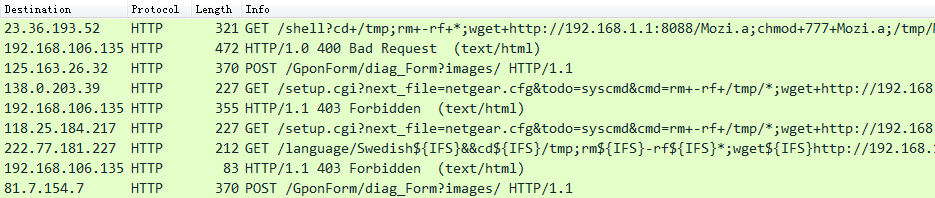 Mozi主要通过Telnet弱口令和一些已知的漏洞进行传播。