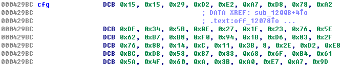 Mozi加入基于DHT的P2P网络后,会同步Config文件,并根据Config文件里的控制字段执行相应功能,事实上攻击者也正是通过Config文件对Mozi下达控制命令。 每个Mozi样本都硬编码了一个XOR加密的初始Config,长为528字节。其中前428字节是配置数据,其后96字节是数字签名,最后4字节是flag字段,用来控制是否更新Config文件。