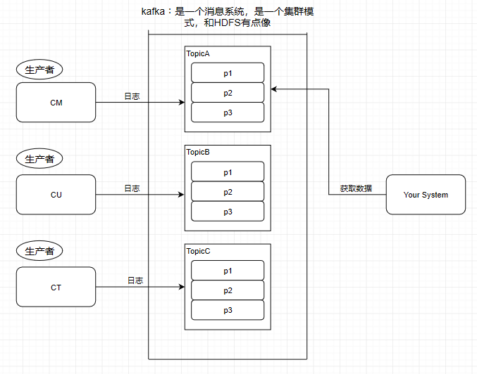 这些 Region 会分布式地存储在各个服务器上面,对应于 Kafka,也是一样,Topic 也是逻辑概念,而 Partition 就是分布式存储单元。