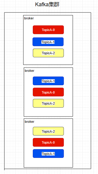 创建一个 TopicA 的主题,3 个分区分别存储在不同的服务器,也就是 Broker 下面。