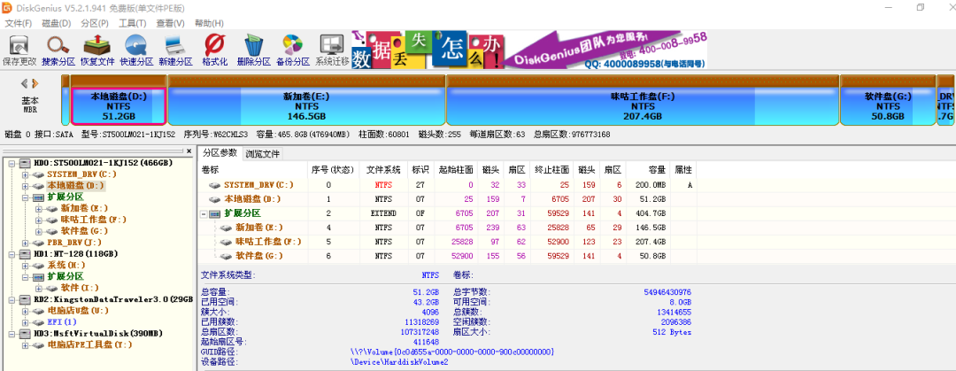 现在的D盘是原先500G机械盘的C盘,系统盘,是主分区,现在要将这个主分区删除,然后把空间合并到扩展分区的E盘。保住E盘数据。
