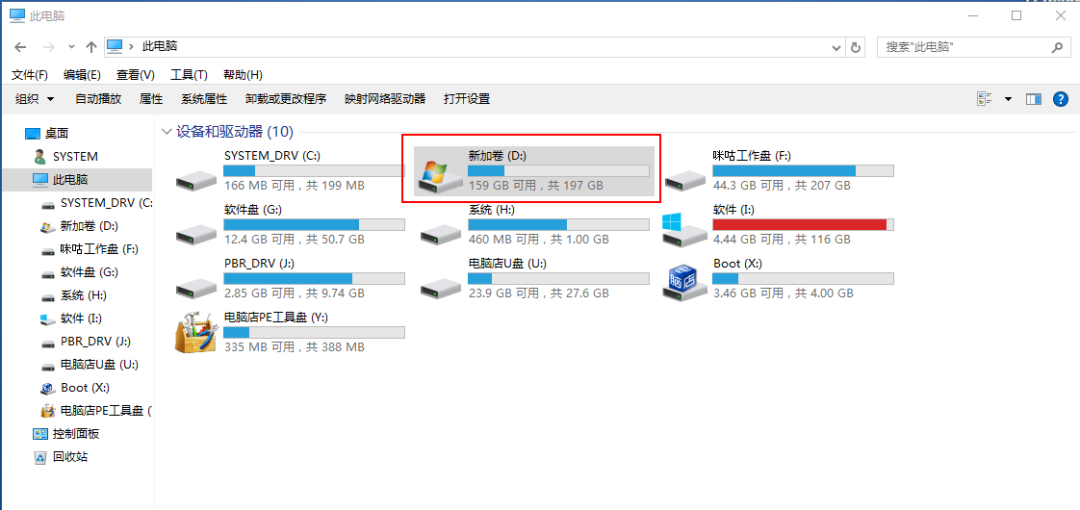 其它盘符中,只有E盘还有107GB空间,但是客户之前的win7系统盘,里面数据都不要,想把下图中的D盘和E盘空间合并一下。E盘的数据还是要的,D盘原先的系统盘中的数据不要了。