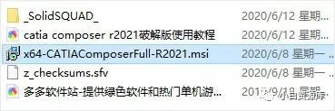 1、下载解压,得到ds catia composer r2021中文原程序和破解文件;