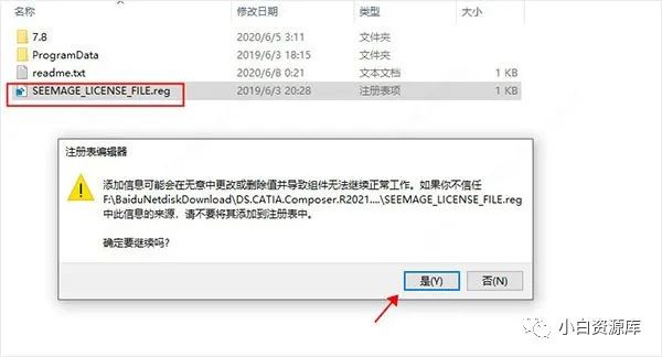 3、再运行“ SEEMAGE_LICENSE_FILE.reg”并确认将信息添加到Windows注册表中;