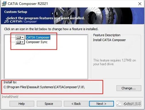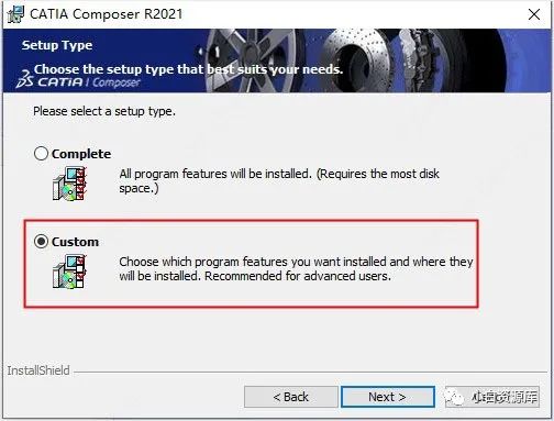 4、双击文件“x64-CATIAComposerFull-R2021.msi”安装软件,安装选项选择自定义coustom;