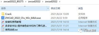 1、下载好数据包后进行解压得到中望CAD2022源文件和破解补丁文件