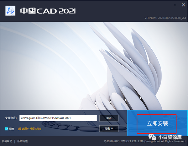 2、双击“ZWCAD_2021_Chs_Win_64bit.exe”依提示进行安装;