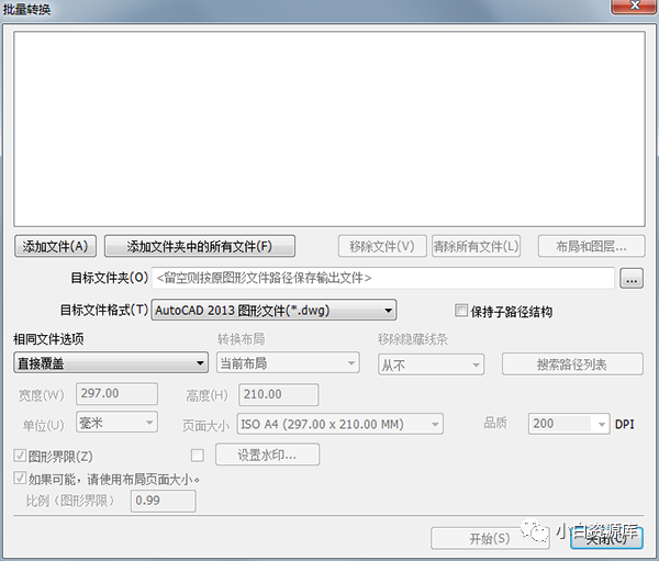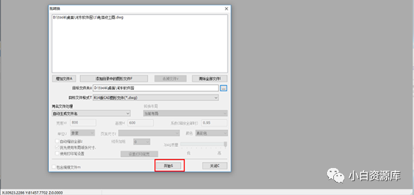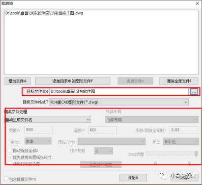 6、紧接着,我们选择相依的目标文件夹、同名文件处理、转换布局、打印笔宽等参数进行设置;