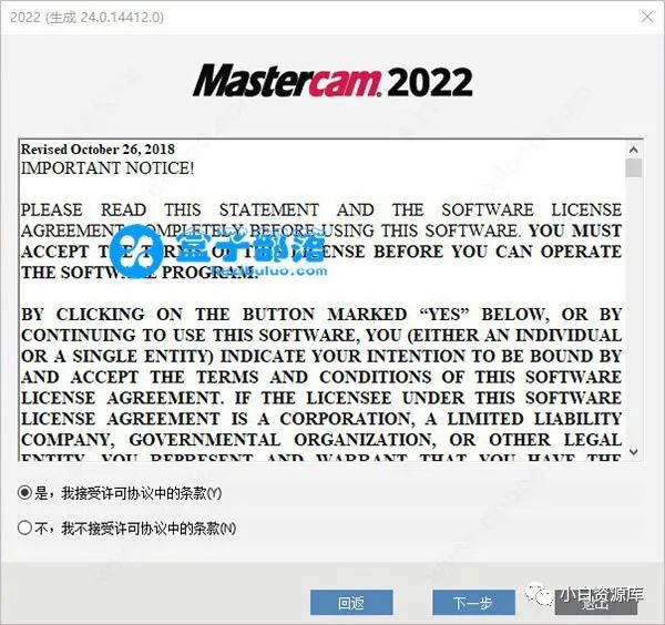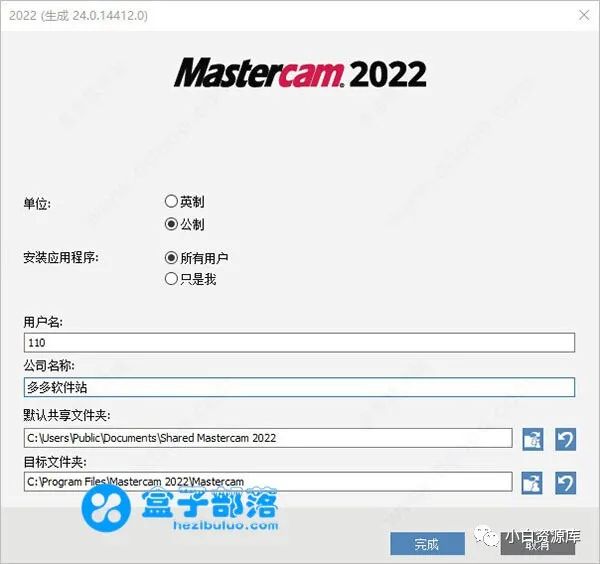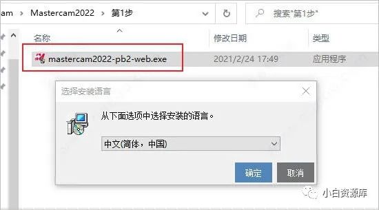 6.第一步:首先双击运行"mastercam2022-pb2-web.exe"程序,并默认简体中文进行安装;