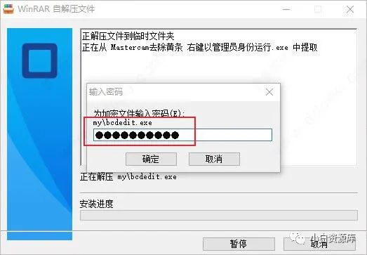 15.再将密码:3251165332,粘贴进入,点击确定;