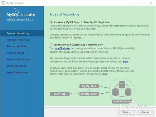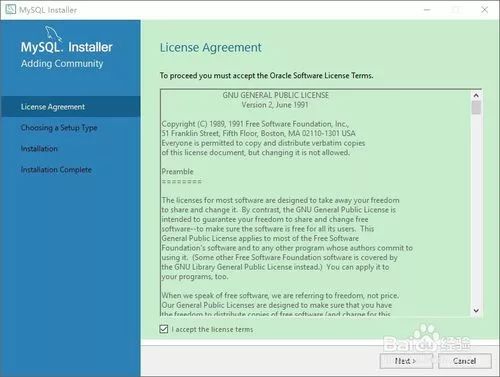 3、选择选择安装方式,Choosing a Setup Type 这里选择默认安装方式 第一个开发,点击下一步(只是需要mysql作为数据库服务器的话,选择第二个Server Only,全部安装选择第四个Full)