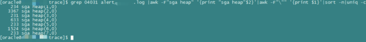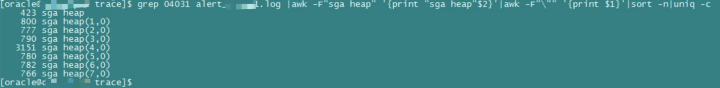 统计1节点每个子池及duration出现04031的次数,sga heap(n,0)-n代表第几个子池,0代表是第几个duration: