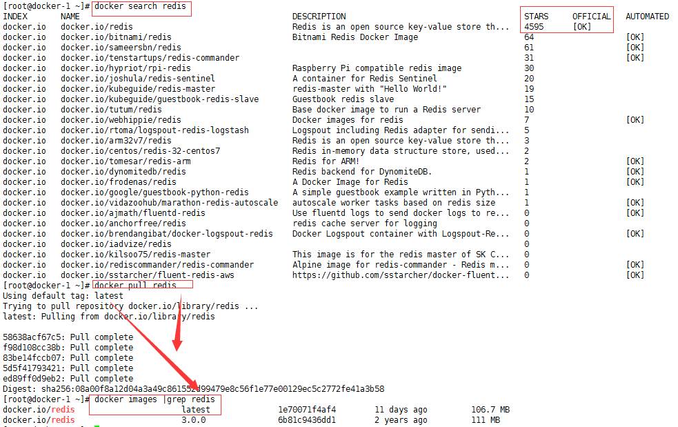 在原来VM使用redis的时候,搭建的时候,需要下载redis的源码,然后进行编译,安装,配置文件,启动服务,好麻烦的。。。当使用docker的时候,指令太少了,简单到爆炸。。。。