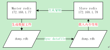 在进行redis数据复制的过程中,主服务器先生成数据文件dump.rdb,然后将此数据文件发送给多个请求的从服务器,然后从服务器接收到数据文件之后,载入到内存当中,从而使用。此后从服务器一秒向主服务器发送请求,从而来同步主从服务器之中的数据。