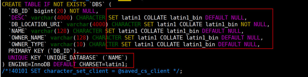 hive使用元数据库来记录相关hdfs数据文件和数据库表之间的映射关系,当创建的数据库是使用中文注释的时候,那么就会碰到乱码问题。
