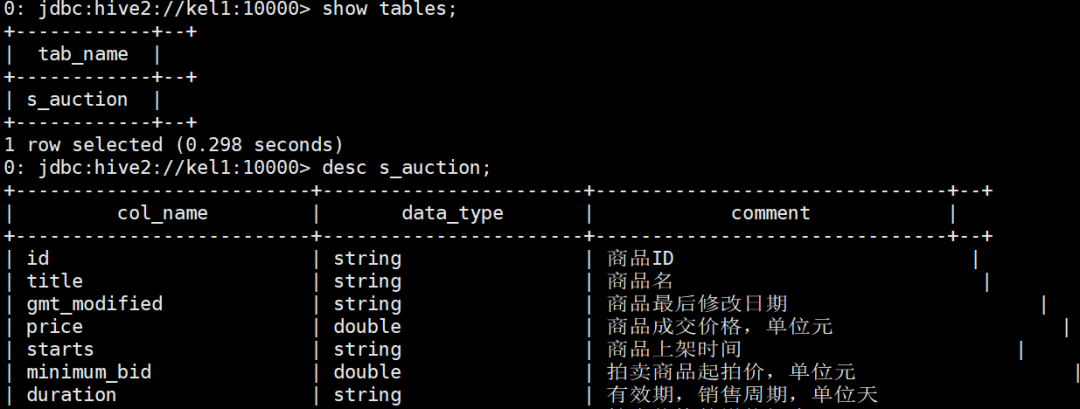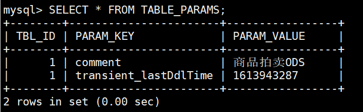 创建一个ods层的表,使用中文进行注释,发现不能显示乱码: