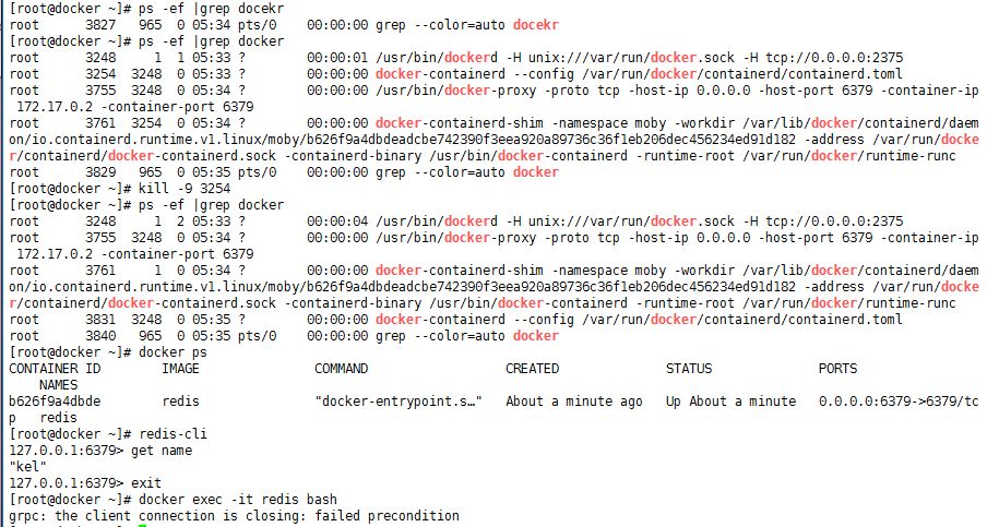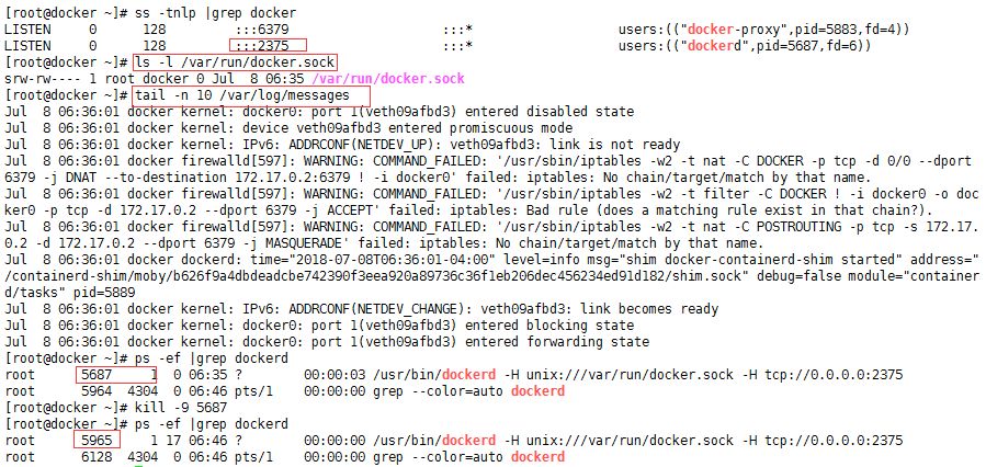 查看服务是否启动,如果dockerd进程被杀,会被systemd自动拉起