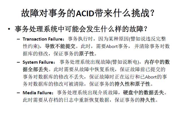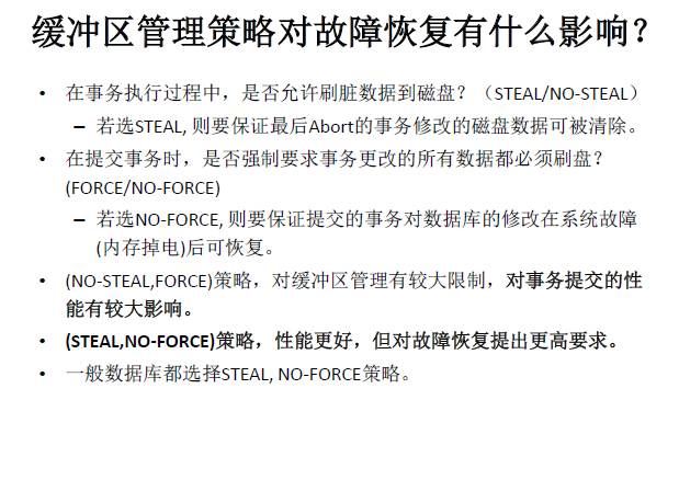 下面开始谈故障恢复的技术。主要包括几个问题:(1)事务处理系统通常要应对哪几类的故障?(2)内核中的缓冲区管理策略对故障恢复提出了什么要求?(3)内核中怎样通过预写式日志的技术来实现故障恢复?