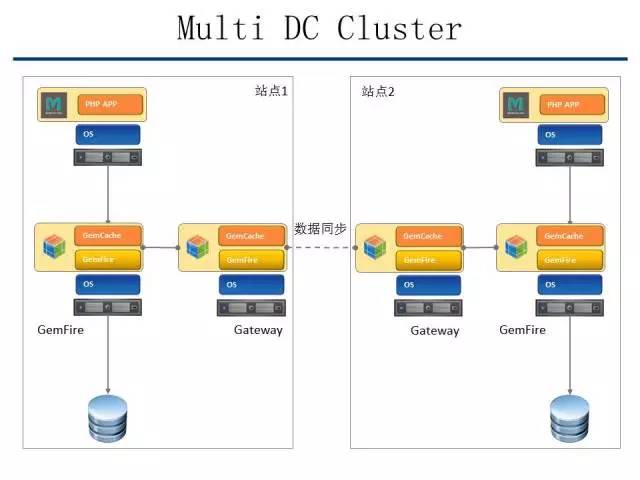 多数据中心集群GemFire本身有一个Gateway,如果大家对GemFire有所了解的话应该知道,Gateway可以在各个数据中心之间进行数据同步。如果考虑容灾就不需要做了。如果是MySQL集群,跨数据中心或者数据同步的话,做异地容灾的延迟是比较大的,但GemFire完全不需要考虑这么多,如果整个数据中心,或者某个数据中心,某个组瘫痪或出现故障,可以平滑迁移到其他数据中心。