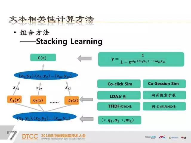 实际上我们用了一个组合有监督的方法,就是用一系列的打分方式。我们会放入各种各样的分类器,然后通过逻辑回归方法,把结果汇总进行学习。