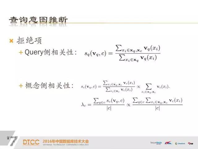 最后,我们会用传统的信息检索方法,测试我们的query,然后加上TF-IDF打分的概念t之间共同出现的权重在query中占的比例,要求必须大于一个域值。我们还会算query和concept的特征重叠是不是够大,只有这两者都够大的时候,我们才认为我们的推断是准确的。