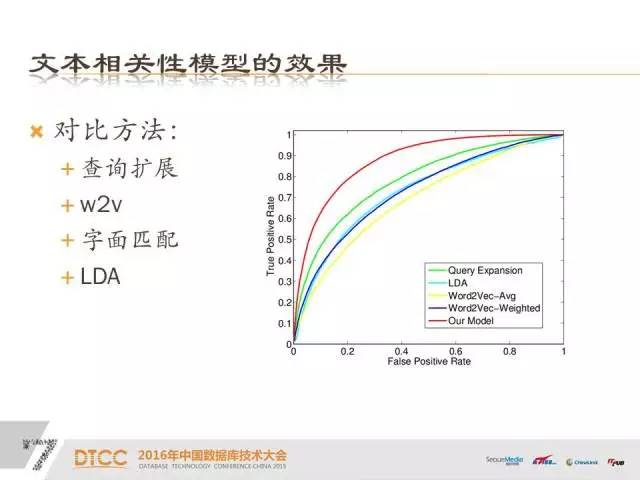 需要测量概念质量好坏的时候,我们要做一个文本相关性算法对比试验。这条红线就是我们的的模型做出来的文本相关性的AUC。概念发现结果如下图所示: