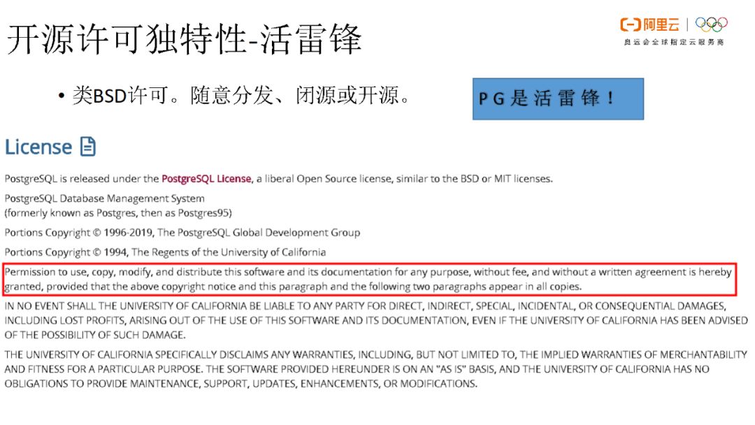 PG还是一个“活雷锋”,大家可以随意使用、拷贝、修改和分发。PG的许可证非常的友好,因此可以将PG作为解决方案或者软件资产的一部分进行打包输出。