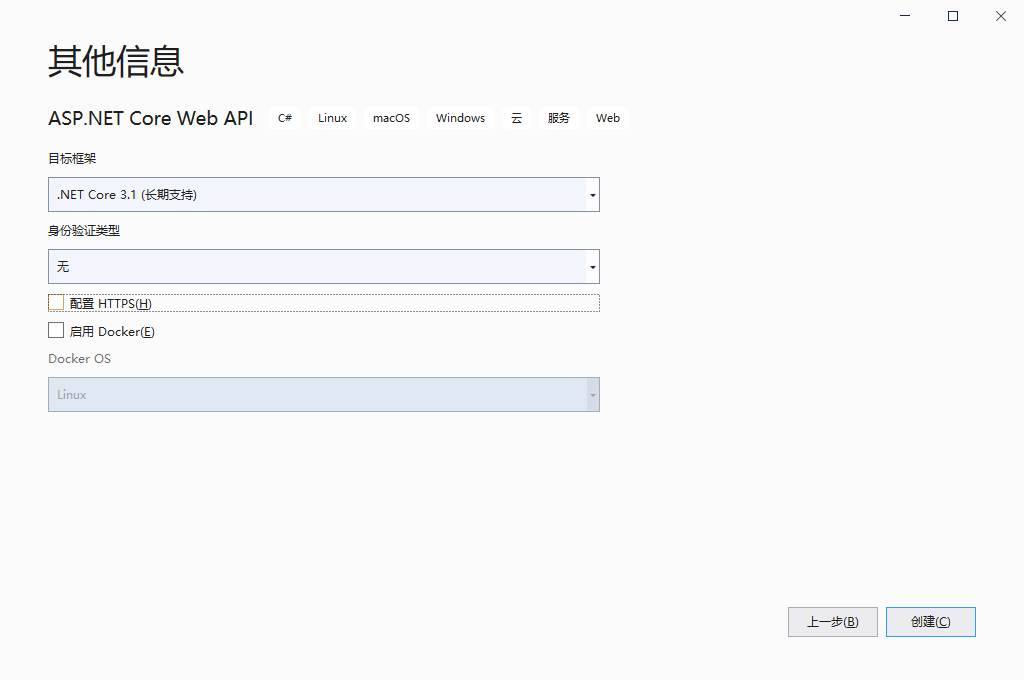 我们创建一个ASP.NET Core Web API项目,选择.NET Core3.1。