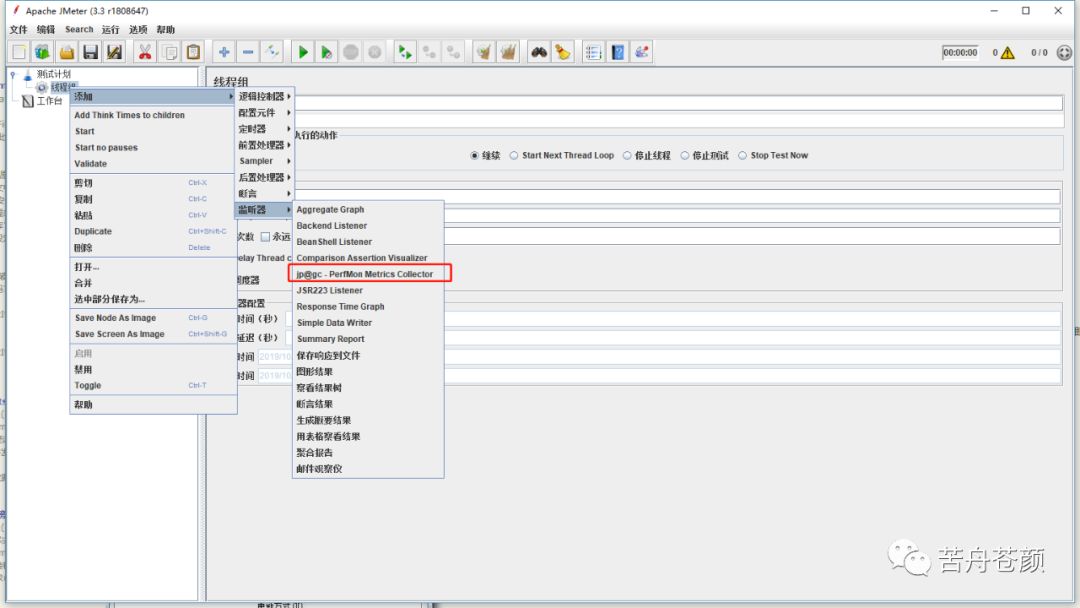1.在jmeter中添加线程组、添加perfmon监听器