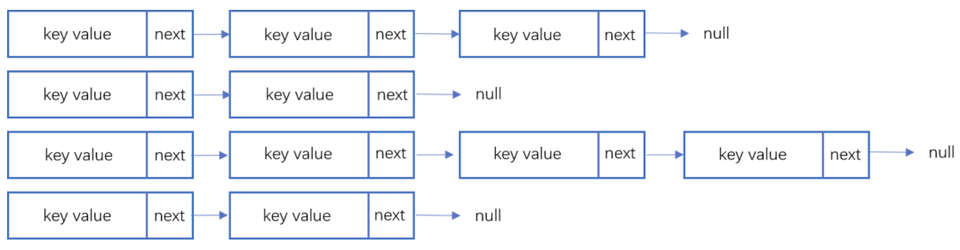 链表地址法是使用一个链表数组,来存储相应数据,当hash遇到冲突的时候依次添加到链表的后面进行处理。