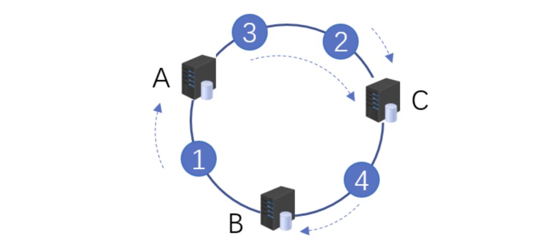 的基本原理是将输入的值hash后,对结果的hash值进行2^32取模,这里和普通的hash取模算法不一样的点是在一致性hash算法里将取模的结果映射到一个环上。将缓存服务器与被缓存对象都映射到hash环上以后,从被缓存对象的位置出发,沿顺时针方向遇到的第一个服务器,就是当前对象将要缓存于的服务器,由于被缓存对象与服务器hash后的值是固定的,所以,在服务器不变的情况下,一个openid必定会被缓存到固定的服务器上,那么,当下次想要访问这个用户的数据时,只要再次使用相同的算法进行计算,即可算出这个用户的数据被缓存在哪个服务器上,直接去对应的服务器查找对应的数据即可。这里的逻辑其实和直接取模的是一样的。如下图所示: