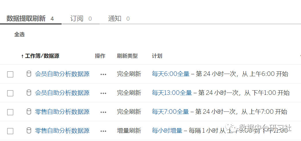 Tableau支持提取数据库数据到服务器生成hpyer文件,基于hyper文件的查询比数据库快很多,所以对数据量比较大的自助分析来说,是一个很实用的功能。同时,数据源也支持定时刷新。由于数据仓库或者数据中台的跑批一般都是晚间进行,所以大多数情况下定时刷新都是可以满足需求。