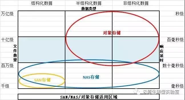 先扔一张图,来说明各个不同类型存储比较适用的区域: