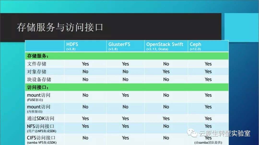 1)目前GlusterFS支持FUSE方式挂载,可以通过标准的NFS/SMB/CIFS协议像访问本体文件一样访问文件系统,同时其也支持HTTP/FTP/GlusterFS访问,同时最新版本支持接入Amazon的AWS系统;