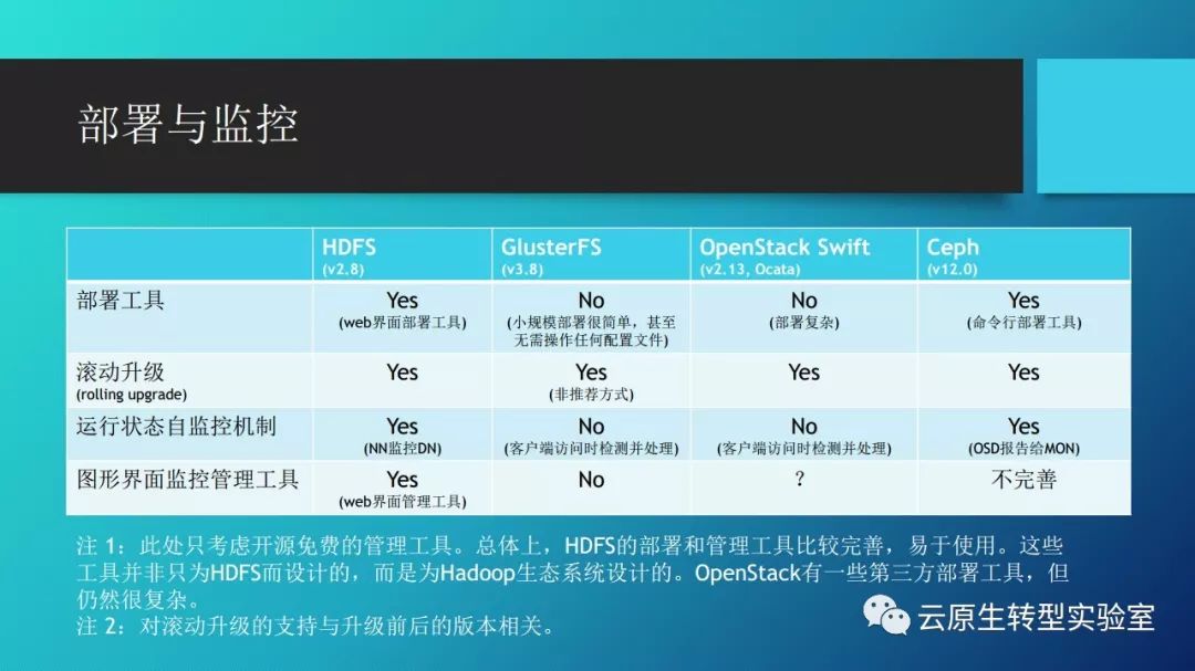 1)目前尚未大规模投入商用,尤其是CephRBD和RadosGW,系统稳定性有待考究。