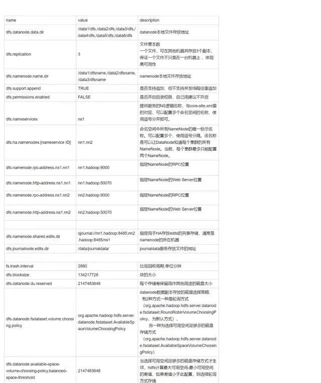 HDFS有用的配置文件及说明