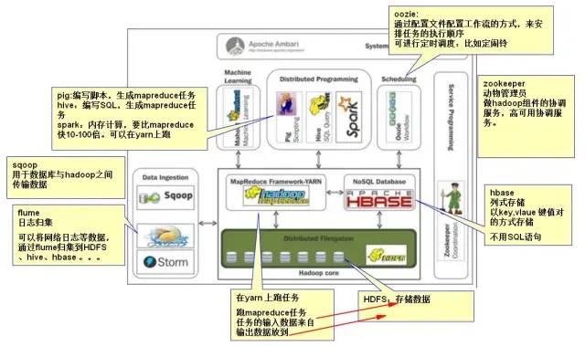 Hadoop2.0 的Yarn(MRv2):将资源管理和任务调用两个功能分开,提高扩展性,并支持多计算框架 。