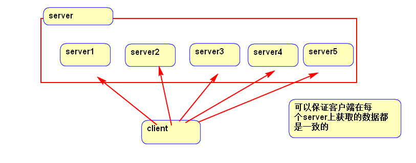1)leader失效后会在follower中重新选举新的leader2)每个follower都和leader有连接,接受leader的数据更新操作3)客户端可以连接到每个server,每个server的数据完全相同4)每个节点的服务Server,记录事务日志和快照到持久存储