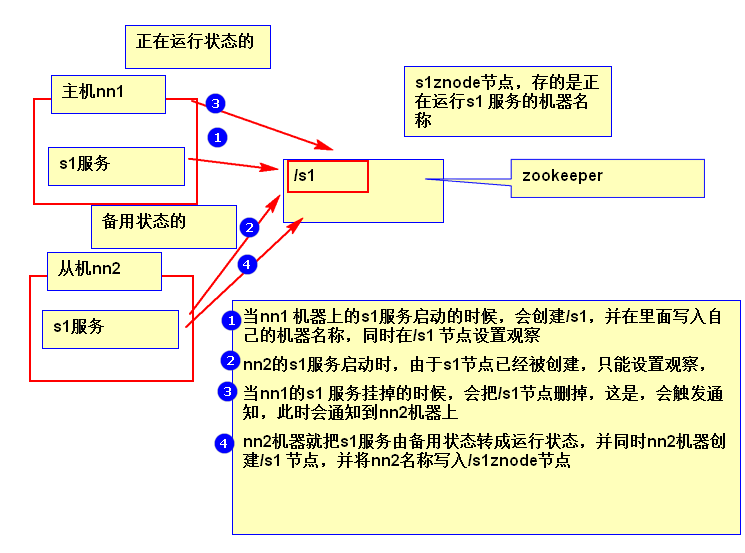 1)ZooKeeper本质上是一个分布式的小文件存储系统;2)Zookeeper表现为一个分层的文件系统目录树结构(不同于文件系统的是,节点可以有自己的数据,而文件系统中的目录节点只有子节点),每个节点可以存少量的数据(1M左右)。3)每个节点称做一个ZNode。每个ZNode都可以通过其路径唯一标识。4)ZooKeeper中的每个节点存储的数据要被原子性的操作。也就是说读操作将获取与节点相关的所有数据,写操作也将替换掉节点的所有数据。5)在zookeeper创建顺序节点(create -s ),节点路径后加编号,这个计数对于此节点的父节点来说是唯一的。6)ZooKeeper中的节点有两种,分别为临时节点和永久节点。节点的类型在创建时即被确定,并且不能改变。① 临时节点:在客户端用create -e创建,该节点的生命周期依赖于创建它们的会话。一旦会话(Session)结束,临时节点将被自动删除,当然可以也可以手动删除。虽然每个临时的Znode都会绑定到一个客户端会话,但他们对所有的客户端还是可见的。另外,ZooKeeper的临时节点不允许拥有子节点。② 永久节点:在客户端用create 创建,该节点的生命周期不依赖于会话,并且只有在客户端显示执行删除操作的时候,他们才能被删除。7)客户端可以给节点设置watch,我们称之为监视器。当节点状态发生改变时(Znode的增、删、改)将会触发watch所对应的操作。当watch被触发时,ZooKeeper将会向客户端发送且仅发送一条通知。